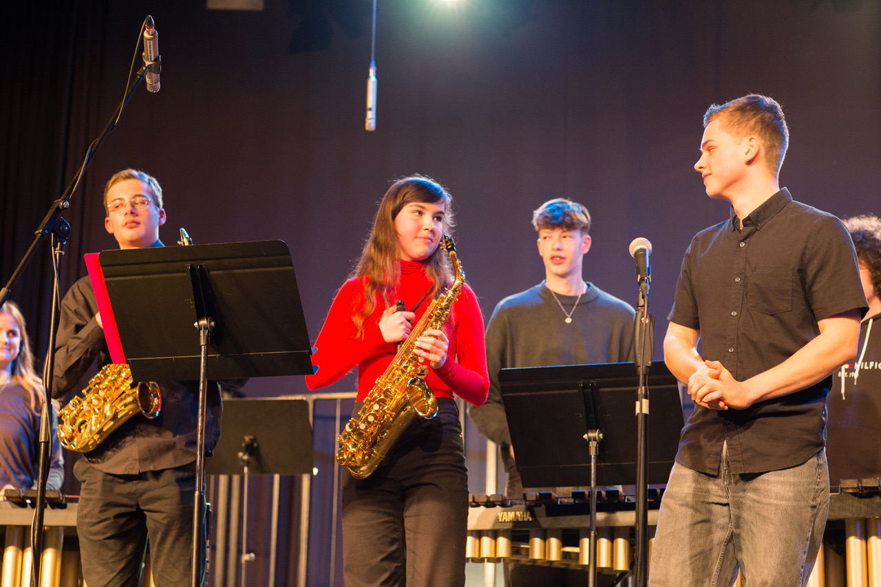 Ein großes Dankeschön allen Musikerinnen und Musikern und unserer Schultechnik, die mit gutem Sound und Licht eine stimmungsvolle Atmosphäre in die Aula gezaubert hat!