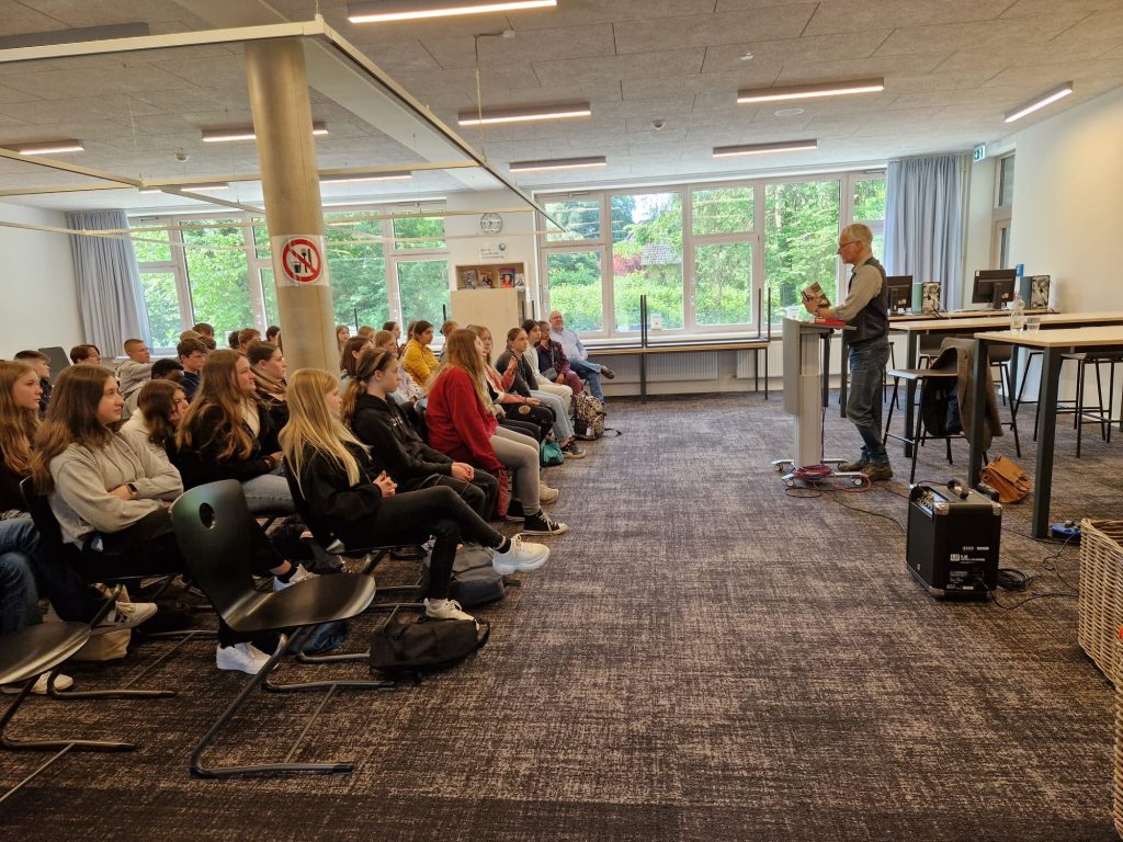 Hier können Schülerinnen und Schüler der Klassen 5-9 in jeder Pause Bücher unterschiedlichen Genres ausleihen: Spannende Krimis, packende Jugendromane oder informative Sachbücher. Natürlich kann auch jeder einfach zum Lesen vorbeikommen.