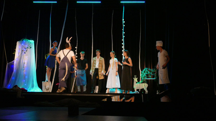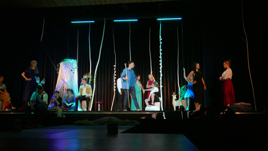 Am 11. und 12.6. brachte der Theaterkurs S2 von Fr. Oevermann Shakespeares „Ein Sommernachtstraum“ auf die Bondenwald-Bühne. Musikalisch unterstützt von Mitgliedern der BigBand bot das Ensemble einen kurzweiligen und spielfreudigen Abend rund um die Irrungen und Wirrungen der Liebe im Zauberwald des Lebens.
