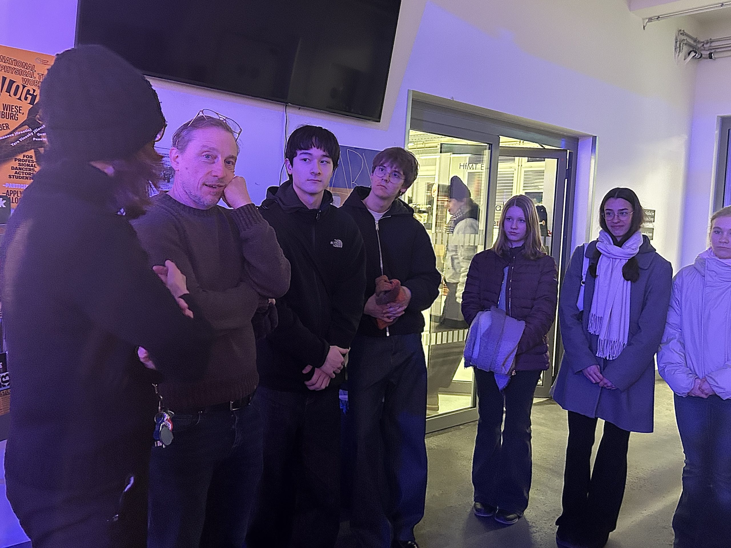Zwei Oberstufen-Theaterkurse besuchten die Hochschule für Musik und Theater und hatten die einmalige Gelegenheit, während einer Bachelor-Inszenierung im Publikum zu sitzen. Der Dozent für Dramaturgie sowie die Produktionsleitung gaben eine sehr hilfreiche Einführung in das Stück und den Inszenierungsprozess. Dank Andrea Tietz von der Hochschule wurde dieses tolle Erlebnis möglich. Besonders spannend war es, Einblicke in die Arbeit junger Regisseur:innen zu erhalten, die kaum älter waren als die Schüler selbst. Die Inszenierung regte sehr zum Nachdenken an, und auch die Schauspieler:innen freuten sich über den lebendigen Besuch im Publikum.