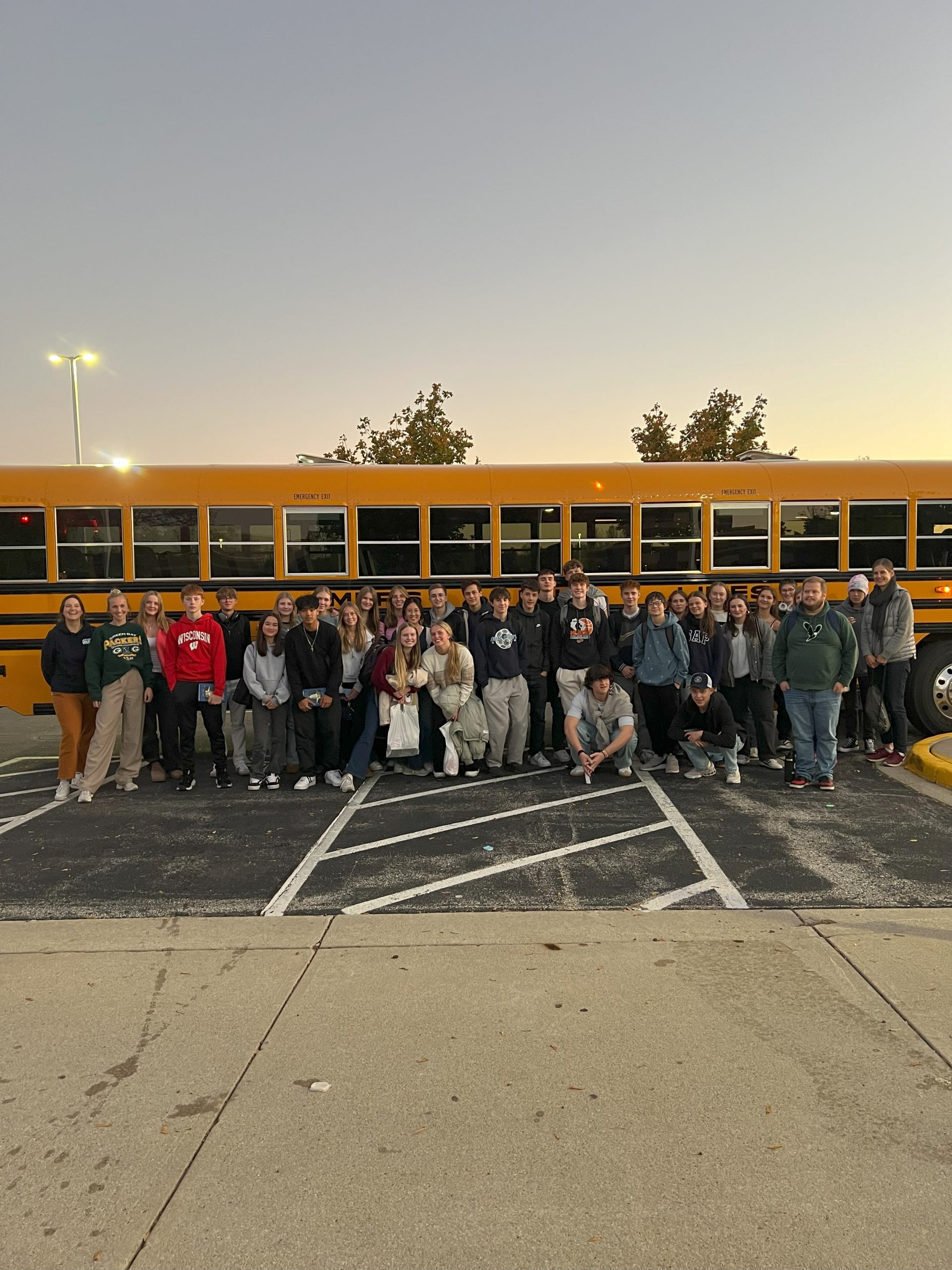 Am 4. Oktober war es endlich so weit. Ein Jahr voller Vorbereitungen und Aufregung sowie einem Gegenbesuch im Sommer 24 der Schüler:innen der Bay Port High ging vorbei und der Abflug stand bevor. Glücklicherweise verlief alles reibungslos: Wir hatten keinerlei Überraschungen oder Verspätungen und kamen nach etwa 20 Stunden Reise heil, munter aber auch müde abends in Green Bay an. Der Empfang war überwältigend: Alle Gastfamilien warteten bereits sehnsüchtig auf die Gruppe aus Hamburg vor der High School.