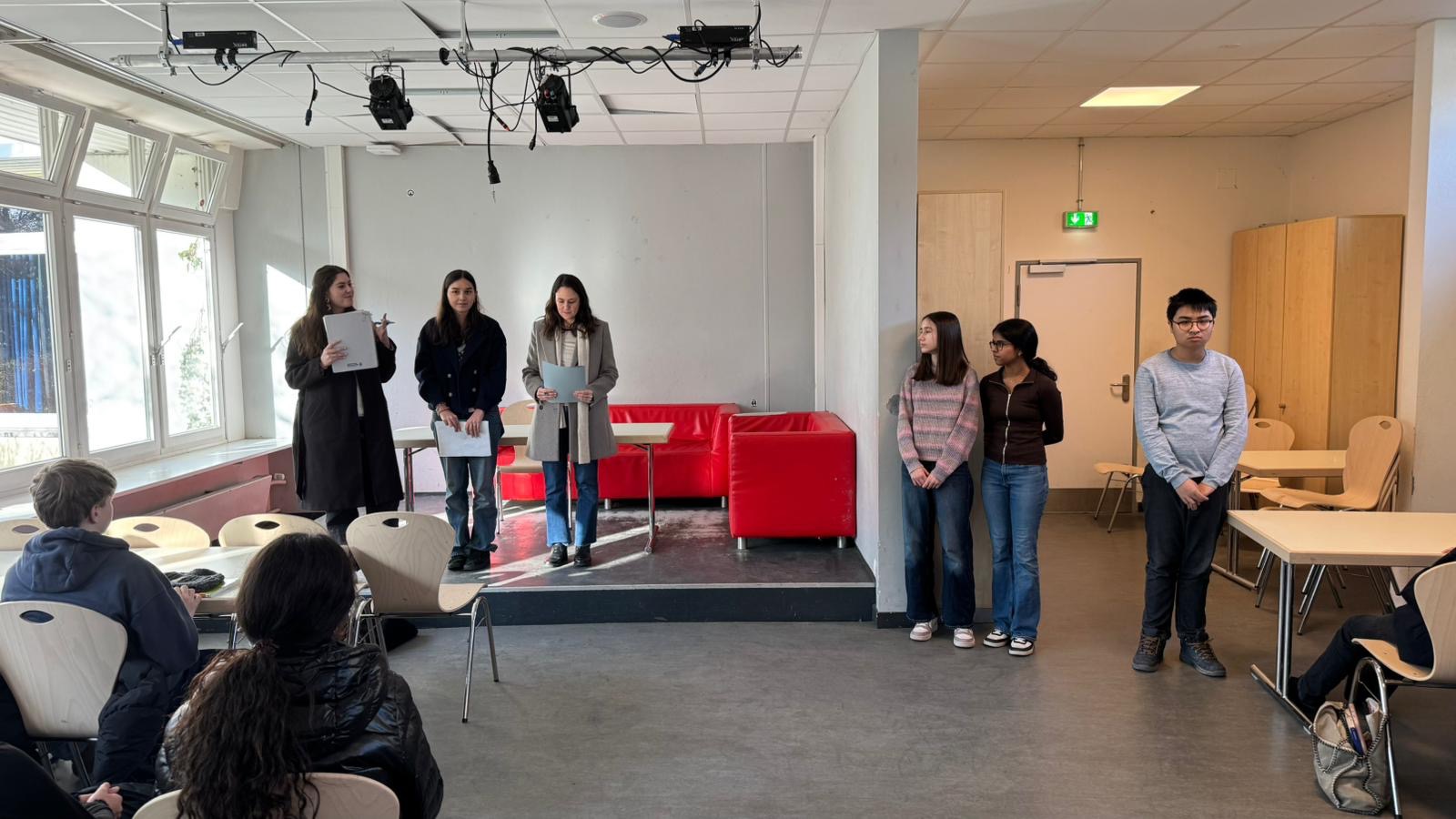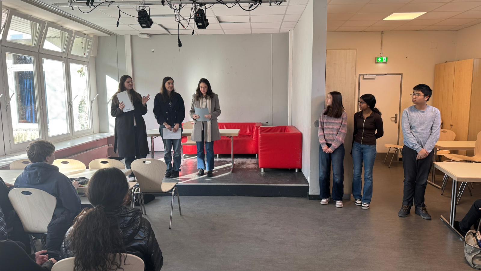 Die Aufgabe war anspruchsvoll: Es ging nicht nur darum, die Wörter korrekt auszusprechen. Die Schülerinnen präsentierten zuvor geübte Texte szenisch. Die richtige Intonation, lebendige Betonung und eine Prise Schauspielkunst waren gefragt, um das Publikum und die Jury zu überzeugen. Alle Spanischlernenden des achten Jahrgangs waren anwesend und erfolgten gespannt die Darbietungen.