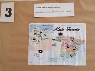 Además, cada alumno recibió una carta con un número y una pegatina de un color. Después de la presentación formamos grupos según los números. Cada grupo tenía una tarea diferente sobre el tema de la migración. En mi grupo por ejemplo, escuchamos la canción “Movimiento” de Jorge Drexler y hicimos y teníamos un ejercicio auditivo de la letra de la canción. A continuación, hablábamos sobre el contenido de la canción y sobre nuestras opiniones y pensamientos.