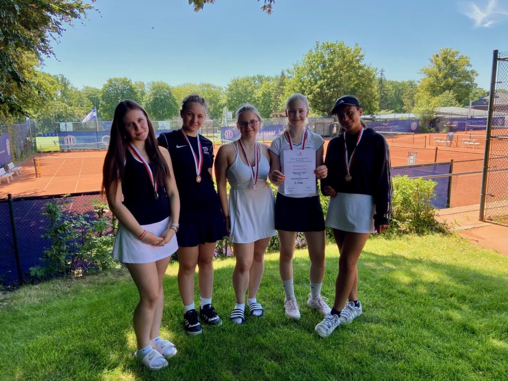 An einem sonnigen Montag gewannen unsere Mädchen in der Altersgruppe WKII (U16) die Hamburger Meisterschaft im Tennis. In einer kleinen, aber feinen Gruppe setzten sie sich gegen die STS Fischbek-Falkenberg und gegen das Gymnasium Hochrad durch. Die Finalrunde gewannen sie souverän mit 4:0 und gaben dabei keinen einzigen Satz ab. Leider fährt die WKII nicht mehr zum Bundesfinale nach Berlin, aber der Titel „Hamburger Meisterinnen“ ist auch so eine schöne Sache. Für das Gymnasium Bondenwald spielten Joelle Radeck, Elena Helms, Jannike Brückner, Tessa Huhnholz und Carla Vaino. Herzlichen Glückwunsch!