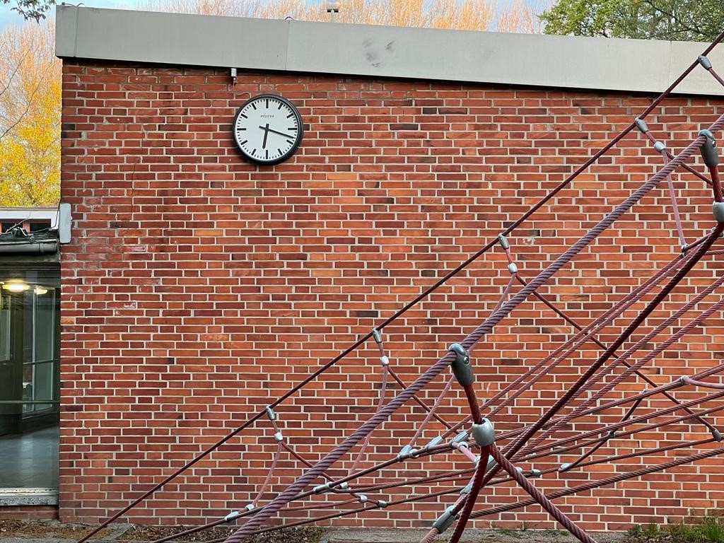 Da in den meisten Bereichen die Uhrzeit nicht auf den mobilen Endgeräten abgelesen werden kann, ist es insbesondere für 5. – und 6.-Klässler*innen schwer gewesen, die Pause so rechtzeitig zu beenden, dass sie pünktlich im Unterricht sein können. Nun hängt auch im Bereich der Kletterspinne eine Außenuhr und kann dort von allen gut eingesehen werden. Wir danken dem Schulverein, der diese Neuanschaffung möglich gemacht hat.