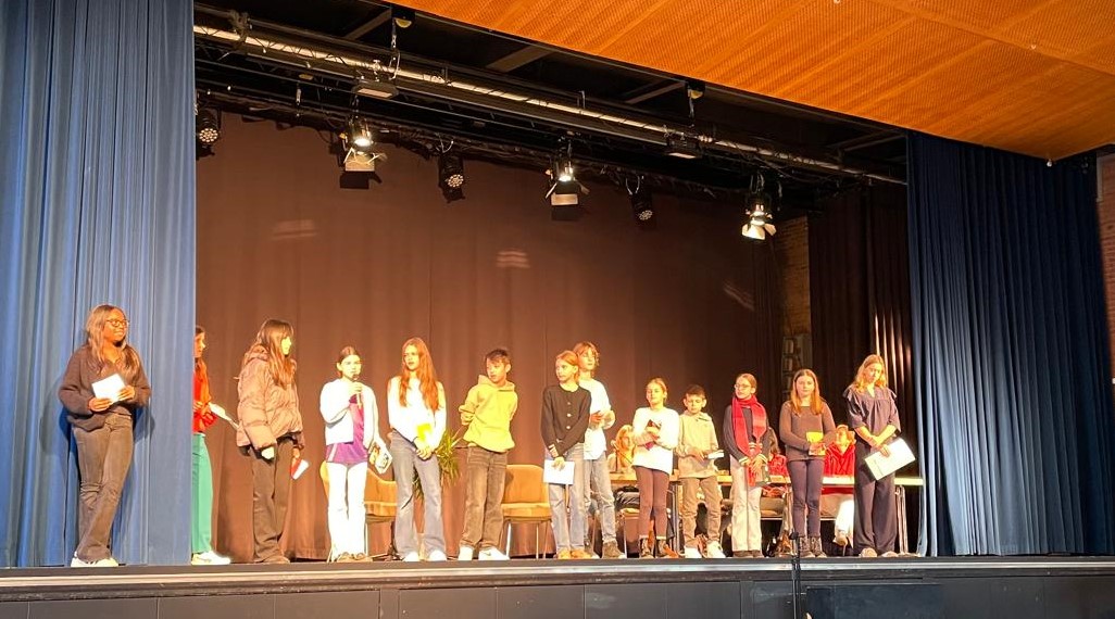 Die Jury bestehend aus Clemens aus Jahrgang 7 , Schulsieger des vergangenen Jahres , Frau Pauli, Frau Mischock, Frau Manet und der Oberstufen-Schülerin Helena Stein hatte die Qual der Wahl und kürte auf Platz 1 Linda Walsemann, 6c. Mitja Marder aus der 6b wurde auf auf den 2. Platz gewählt und ist somit als Vertreter ernannt.
