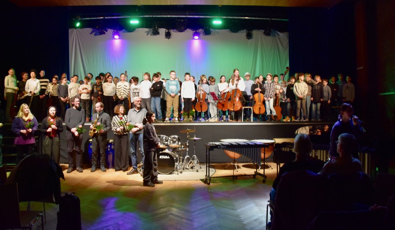 Am Mittwoch, 28. Januar präsentierte unser musikalischer Nachwuchs an Querflöten, Klarinetten, Saxophonen, Trompeten, Posaunen, Schlaginstrumenten, Gitarren, Geigen, Bratschen, Celli, Kontrabässen und an der Harfe wieder ein abwechslungsreiches Programm – von unsterblichen Klassikern über aktuelle Hits bis hin zu humorvoller Bühnenperformance.